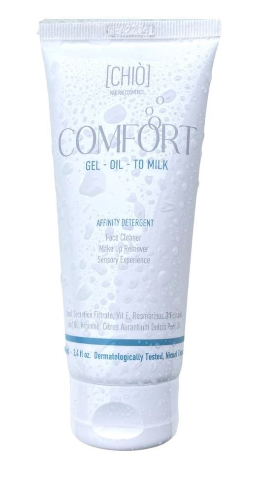 Comfort è un detergente viso per affinità, formula gel, oil to-milk, senza agenti schiumogeni: la sua formula in gel, cattura le impurità, il sebo, il make-up, i filtri solari in modo delicato ed efficace, senza irritare la pelle. La sua texture oleosa dalla consistenza morbida e setosa preserva l’idratazione cutanea e rende il massaggio facciale un momento di piacere. Emulsionato con acqua si scioglie trasformandosi in un lussurioso latte leggero, lasciando la pelle assolutamente pulita, senza residui oleosi. Una volta risciacquato la pelle è profondamente pulita, umettata, nutrita, vellutata e morbida al tatto grazie agli ingredienti dermo-compatibili. È un’esperienza sensoriale unica e piacevole, dove gli aromi e i profumi naturali degli ingredienti presenti aiutano a rilassarsi rievocando stati d’animo di benessere e serenità. La sua colorazione viola/blu fiordaliso è stata pensata per stimolare anche il senso della vista ed evocare sensazioni di relax. La sua formulazione è stata sviluppata con lo scopo di focalizzarsi sull’aspetto sensoriale più importante della detersione viso: il Comfort. Può essere utilizzato in sinergia con un detergente a contrasto, per una pelle (mista, grassa, asfittica) che richiede una pulizia più profonda, o da solo nei casi di pelle sensibile, sottile, secca o matura, che ha la sensazione che tira. La detergenza è il momento più importante della skincare, può essere un’esperienza indimenticabile. Detergenza efficace, con il massimo comfort. INGREDIENTI FUNZIONALI : BAVA DI LUMACA, BAVA DI LUMACA, PANTENOLO, ARGININA, SQUALANO VEG, ACQUA COSTITUZIONALE DI LAVANDA, O.E. DI ROSMARINO, O.E. DI ARANCIO AMARO COME SI UTILIZZA? Applicare una piccola quantità di prodotto sul viso e massaggiare delicatamente, insistendo sulle zone che presentano più impurità. Dopo qualche secondo, inumidire i polpastrelli e continuare a massaggiare: il prodotto si trasformerà in un morbido latte. Successivamente risciacquare abbondantemente con acqua tiepida. Continuare poi con il tonico, il siero, il contorno occhi e terminare la beauty routine con l’applicazione della crema. TEXTURE E COLORE: Texture in gel to oil , colore blu fiordaliso. PACKAGING: 100 ML in tubo, composto al 50% da HDPE e al 50% da LDPE, tappo in PP, da smaltire nella plastica. VERNICIATURA: Realizzata con prodotti ad essiccazione UVLED, completamente atossici e rispettosi dell’ambiente ma molto costosi. La vernice opaca, purtroppo, è l’unica che per poter funzionare ha bisogno della miscelazione con grandi % di solvente , sarà anche più bella ma inquina di più. Abbiamo scelto per questi motivi una vernice lucida. PAO: 6 mesi. TEST VOLONTARI : Dermatologicamente testato , nickel tested. PROFUMAZIONE: senza profumazione aggiunta, naturalmente dagli oli essenziali presenti. SCATOLA ESTERNA: Per nostra etica aziendale laddove non serve, il packaging secondario è eliminato o ridotto. In questo articolo non è presente. INGREDIENTS: Helianthus annuus seed oil, Caprylic/capric triglyceride, Glycerin, Aqua, Sucrose laurate, Lavandula angustifolia flower water, Tocopheryl acetate, Oenothera biennis oil, Squalane, Snail secretion filtrate, Rosmarinus officinalis leaf oil, Arginine, Citrus aurantium dulcis peel oil expressed, Limonene, Phenoxyethanol, Ethylhexylglycerin. *BIOLOGICO *di origine biologica