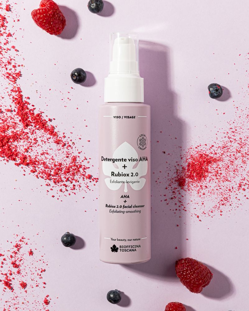 Un trattamento rigenerante-detergente con tensioattivi di origine vegetale che detergono delicatamente uniti ad un complesso esfoliante agli alfa-idrossiacidi