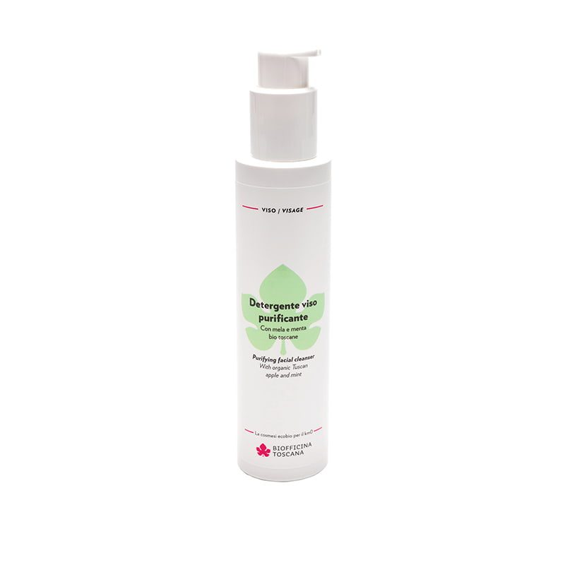 Un gel detergente-purificante per il viso dal tocco fresco e leggero, adatto all’uso quotidiano. Ideale per le pelli miste e grasse, grazie al mix di tensioattivi di origine vegetale pensato per regolare la produzione di sebo e agli estratti bio toscani di mela e menta. Rispetta il pH cutaneo e lascia la pelle pulita e liscia, sprigionando un piacevole profumo. Applicare mattina e sera sulla pelle inumidita, massaggiare e risciacquare. Da abbinare agli altri prodotti della linea viso purificante Biofficina Toscana (Siero viso purificante, Crema viso purificante e Gel idratante Oil free) per un effetto ottimale. Estratto di mela bio Estratto di menta bio Tensioattivi di origine vegetale: detergono con efficacia e delicatezza. Ingredienti : Aqua [Water], Glycerin, Sodium coco-sulfate, Lauryl glucoside, Xanthan gum, Disodium capryloyl glutamate, Coco-glucoside, Glyceryl oleate, Malus domestica fruit extract*, Mentha arvensis extract*, Lactic acid, Benzyl alcohol, Parfum [Fragrance], Phenoxyethanol, Benzoic acid, Dehydroacetic acid, Ethylhexylglycerin, Tocopherol. *da agricoltura biologica