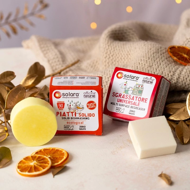 Il Kit Casa Plastic Free è il regalo perfetto per coloro che desiderano un’alternativa ecologica ed efficace ai detergenti tradizionali per la casa, confezionati in plastica. Questa edizione limitata racchiude due detergenti solidi della rinomata linea Solara di Officina Naturae: