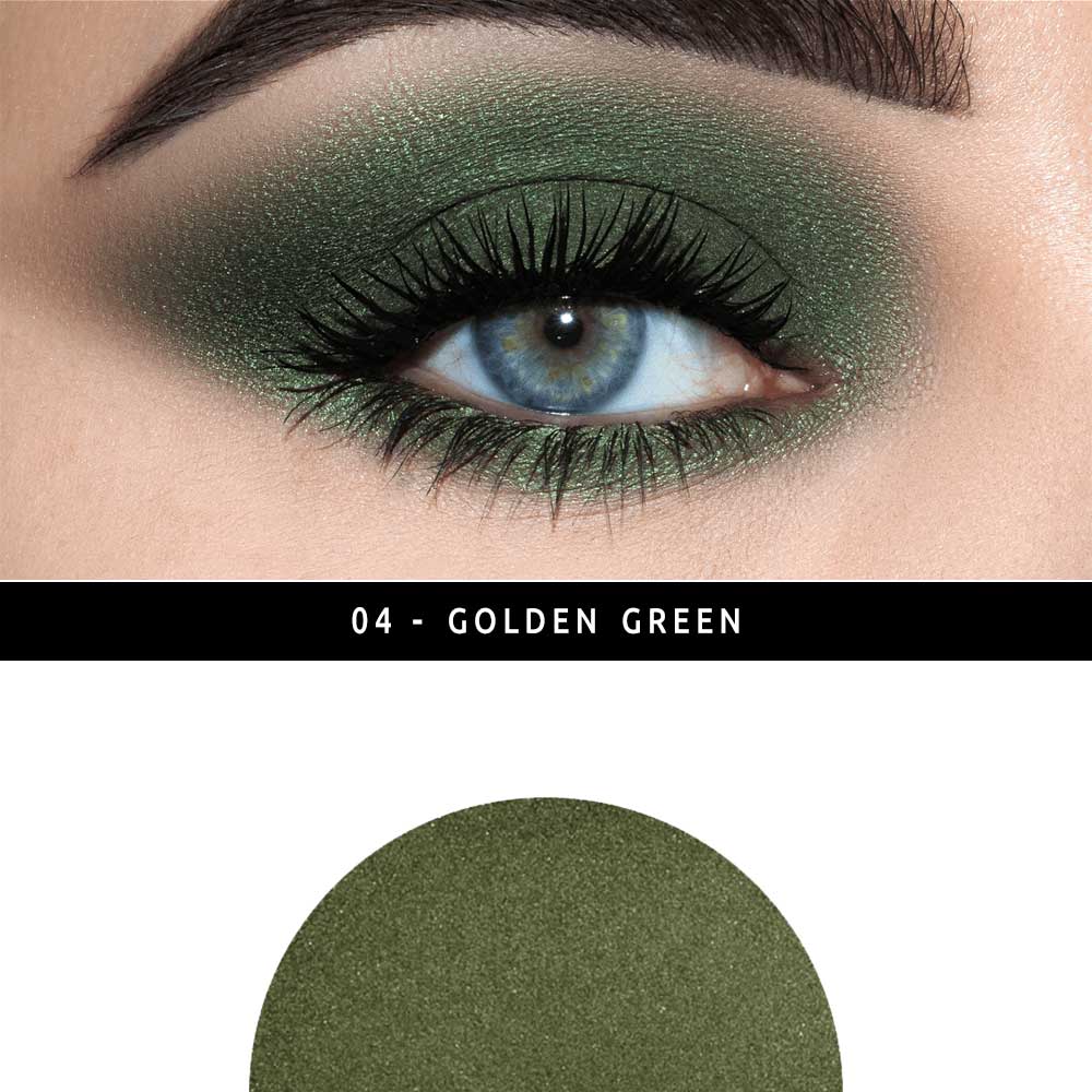 • Ombretto N.04 Golden Green: una tinta verde militare con madreperle dorate dall’effetto satinato per un make-up classico ma sempre di tendenza.
