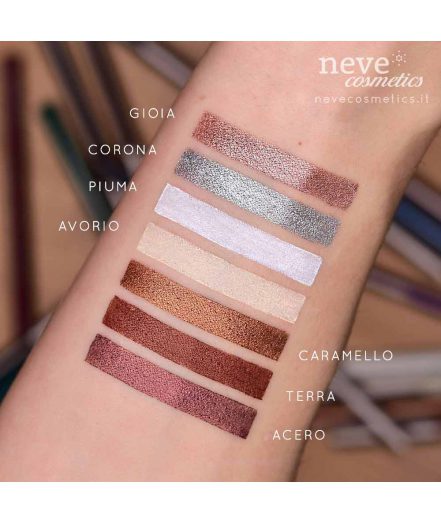 Matita occhi ad alta sfumabilità con formula legante naturale. Ideale come kajal, come eyeliner e come base per esaltare ombretti e pigmenti in polvere. Argento liquido e brillante, per guardare il mondo dall’alto in basso. Lusinghe di luce, diamanti e stelle. Applicazione: viso, occhi e labbra. Finish shimmer: brillante, perlescente e luminoso. Formato: matita in legno diametro 7,5 mm, lunghezza 138 mm. Contenuto: mina colata 1,50 g, diametro 4 mm. Vegetarian & Vegan: nessun ingrediente animale nè di origine animale. Senza siliconi, petrolatum e parabeni. Cruelty-free: assolutamente non testato su animali! Made in Italy. INGREDIENTS: OCTYLDODECYL STEAROYL STEARATE, COCOS NUCIFERA OIL, C10-18 TRIGLYCERIDES, HYDROGENATED VEGETABLE OIL, COPERNICIA CERIFERA CERA, CANDELILLA CERA, SILICA, POLYGLYCERYL-3 DIISOSTEARATE, MICA, ORYZANOL, GLYCERYL CAPRYLATE, TOCOPHEROL, CI 77000.